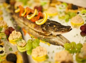 Restaurantul va pune la dispozitie atat preparate traditionale din peste, precum: borsul din peste la ceaun pe pirostrie, storceagul de sturion, supa de burechite, saramura din peste copt pe tabla, plachie lipoveneasca, calcan de Marea Neagra, dar si preparate non-peste sub semnatura bucatarului-sef, precum: cotlete de miel cu piure de cartofi cu masline si perle de ceapa, servite cu sos de menta sau pulpa de rata cu para fiarta in sampanie, sos de coacaze cu piper verde, coaste barbeque sau muschi de vita royal, precum si alte preparate din bucatataria romaneasca sau internationala.